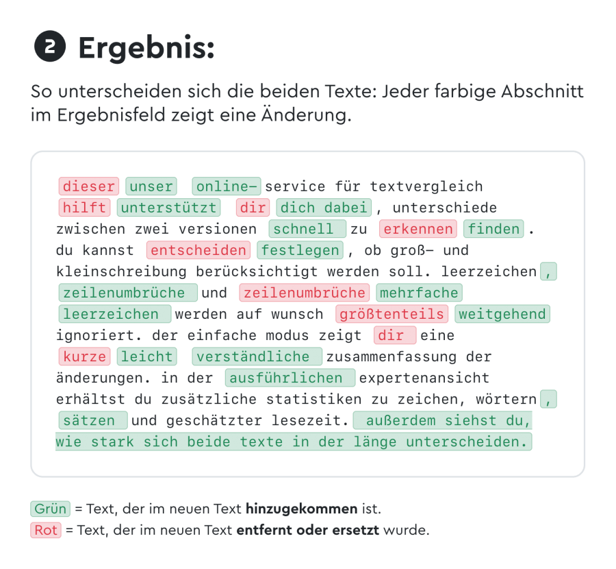 Du möchtest zwei Texte vergleichen und direkt sehen, was sich geändert hat? Dann los: